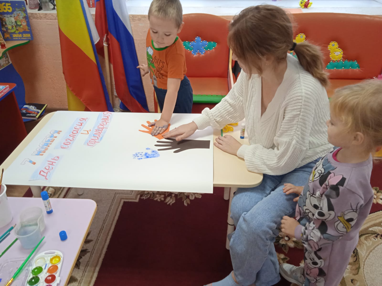 7 ноября в России отмечается День согласия и примирения. Этот день объединяет людей в стремлении к согласию. Сегодня в МБДОУ д/с «Журавлик» х. Антонова прошло занятие, посвященное этому празднику. Воспитанники узнали, что согласие и взаимопонимание – основа счастливой жизни. Дети сделали совместную работу вместе с родителями. Закончилось мероприятие хороводом и песней о дружбе!