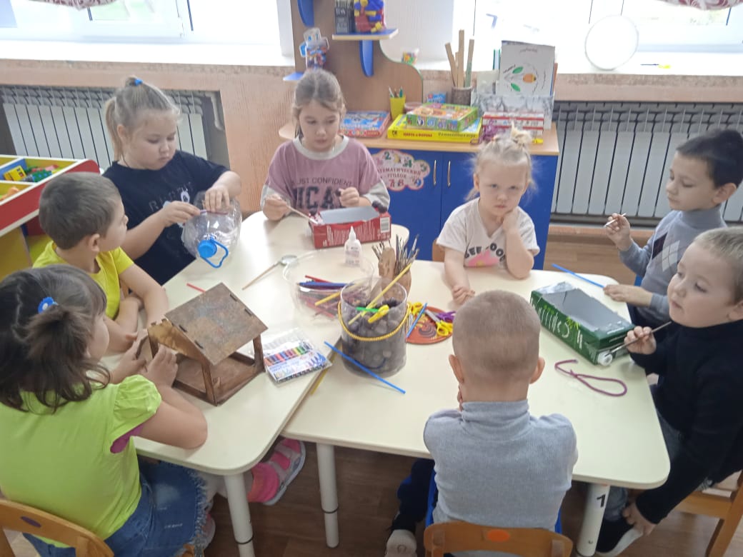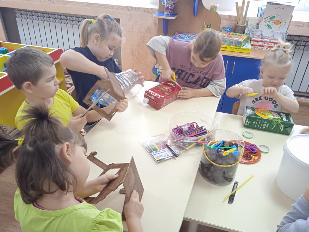 Каждый ребёнок внёс свою лепту: кто‑то вырезал окошки для корма, кто‑то привязывал верёвки для подвешивания, а кто‑то с удовольствием расписывал готовые изделия яркими узорами.